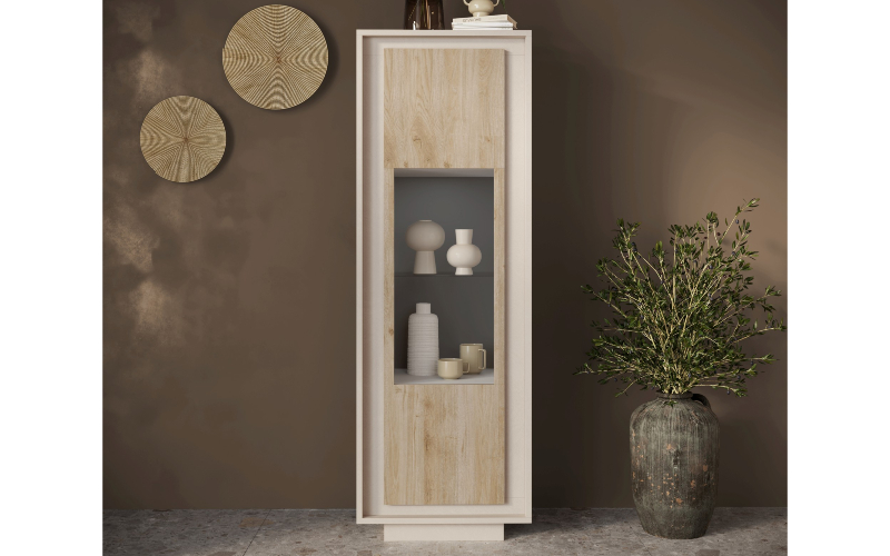 Argentier moderne avec étagères coloris chêne naturel YANIS