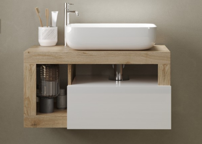 Meuble salle de bain moderne en bois avec vasque 80cm TERRA