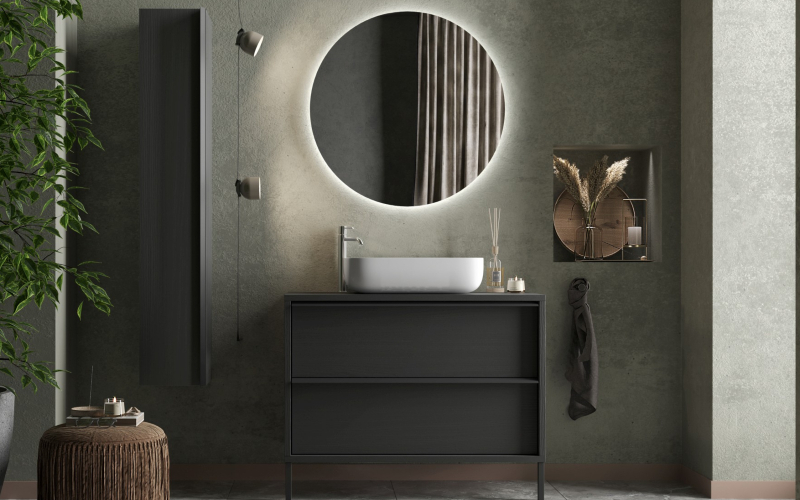 Notre service de personnalisation propose plus de 50 finitions : essences de bois, laquages colorés, textures minérales. Nos designers vous accompagnent pour harmoniser ces choix avec votre carrelage et robinetterie existants.