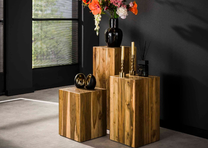 Le bois massif raconte une histoire unique dans chaque salon. Sa patine naturelle révèle le caractère authentique d'un intérieur qui a une âme.