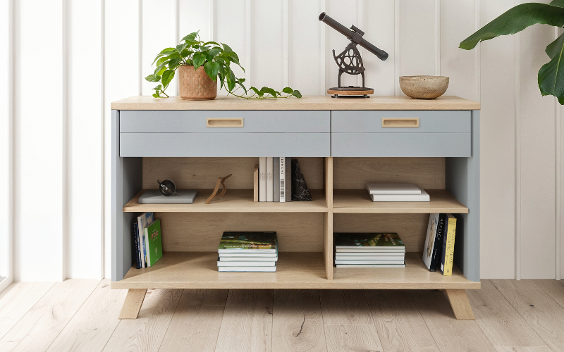 Argentier moderne avec étagères coloris chêne naturel YANIS